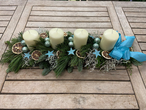 Adventgesteck mit Kerze petrol